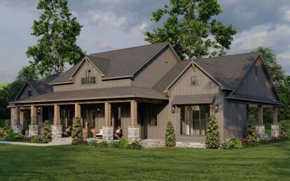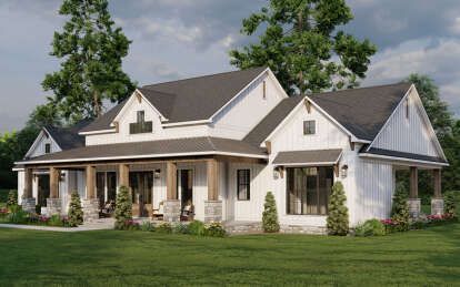 Modern Farmhouse Plan with Large Wrap-Around Porch and Rear Entry Garage