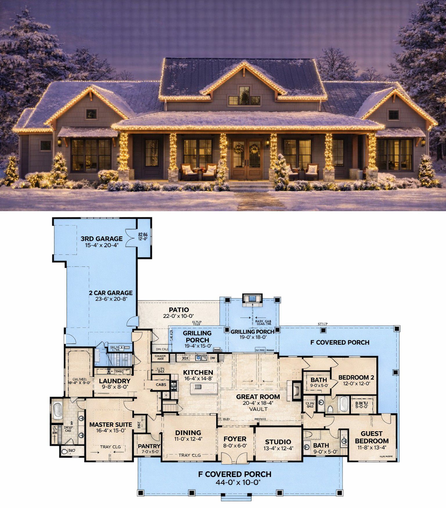 Modern Farmhouse Plan – Elegant 3-Bedroom, 3.5-Bathroom One-Story Home with Porch & Bonus Room (~2,564 Sq Ft)