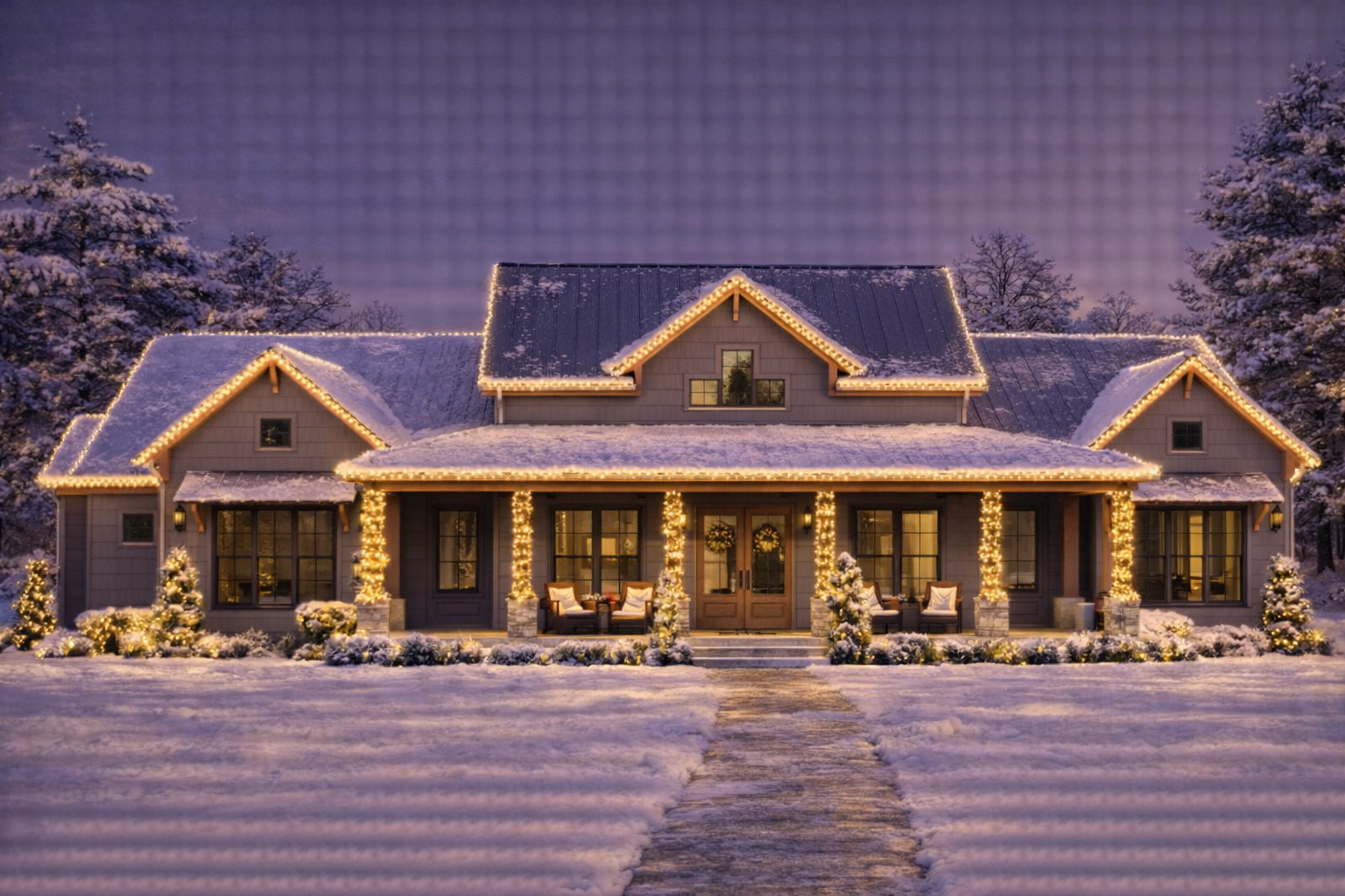From the moment you approach, the exterior gives off timeless farmhouse appeal with clean board and batten siding, balanced rooflines, and wide porches that invite both form and function. 1 The home footprint spans approximately 89′-5″ wide × 83′-6″ deep, creating a commanding yet approachable presence that works beautifully in rural, suburban, or pastoral settings. 2 A covered front porch enhances curb charm and crafts a welcoming space for morning coffee or relaxed evenings outdoors. 3