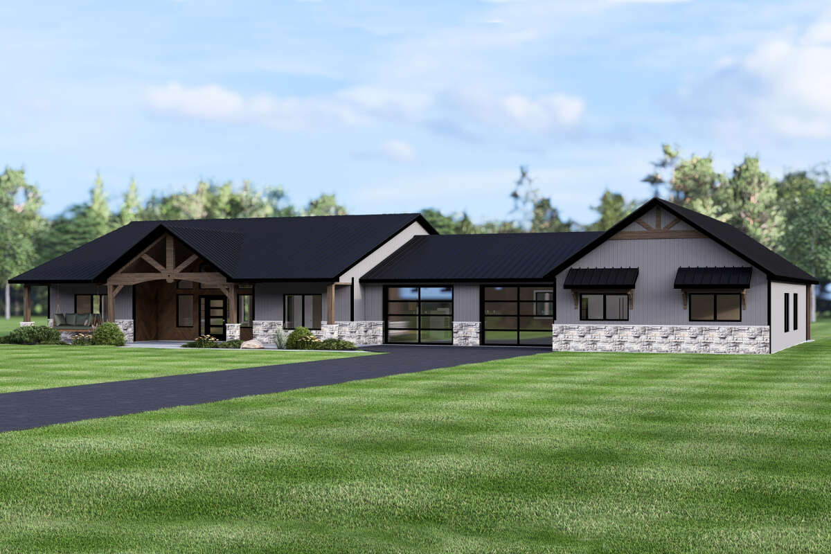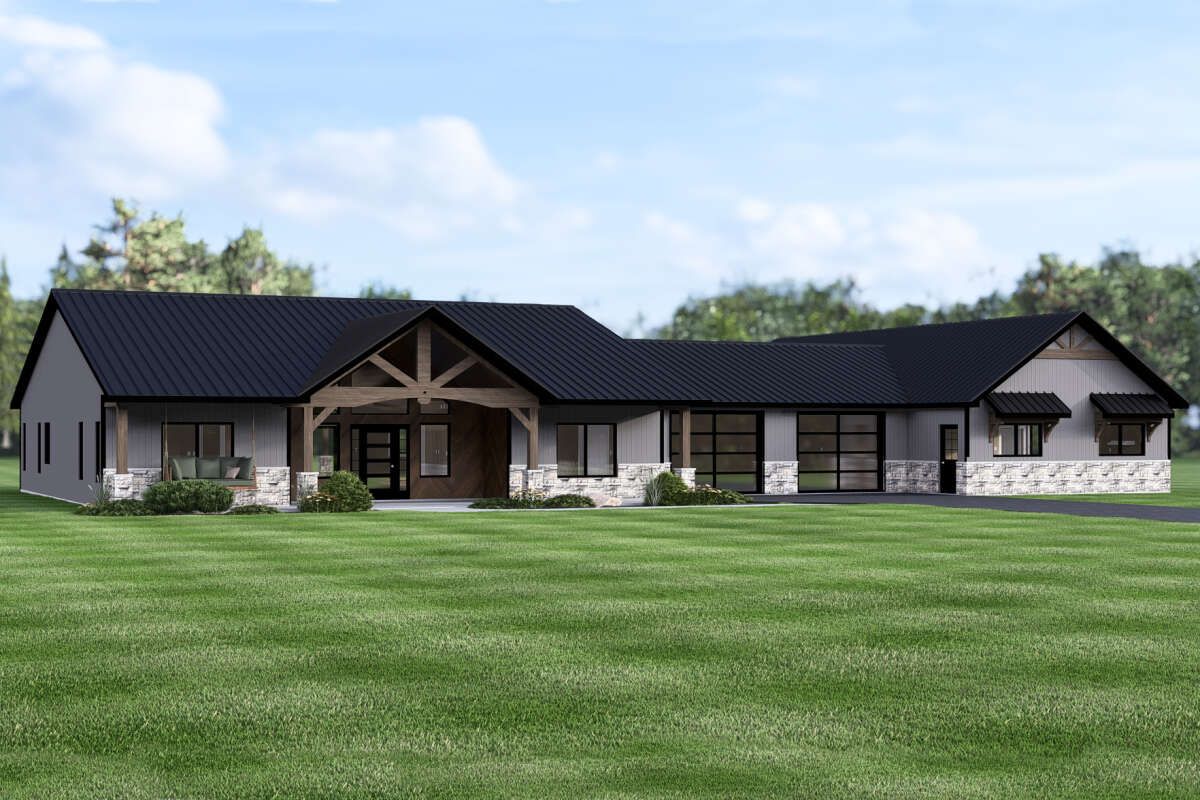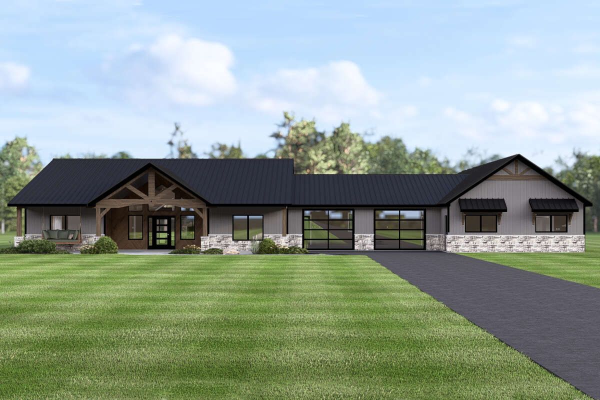 This impressive modern farmhouse design offers about 3,188 sq ft of thoughtfully laid-out, one-story living space with a smart mix of open areas and private retreats. Featuring 4 bedrooms, 3 full bathrooms, and a 2-car garage, the plan blends classic farmhouse charm with contemporary comfort — perfect for everyday family life and lively gatherings alike. 0