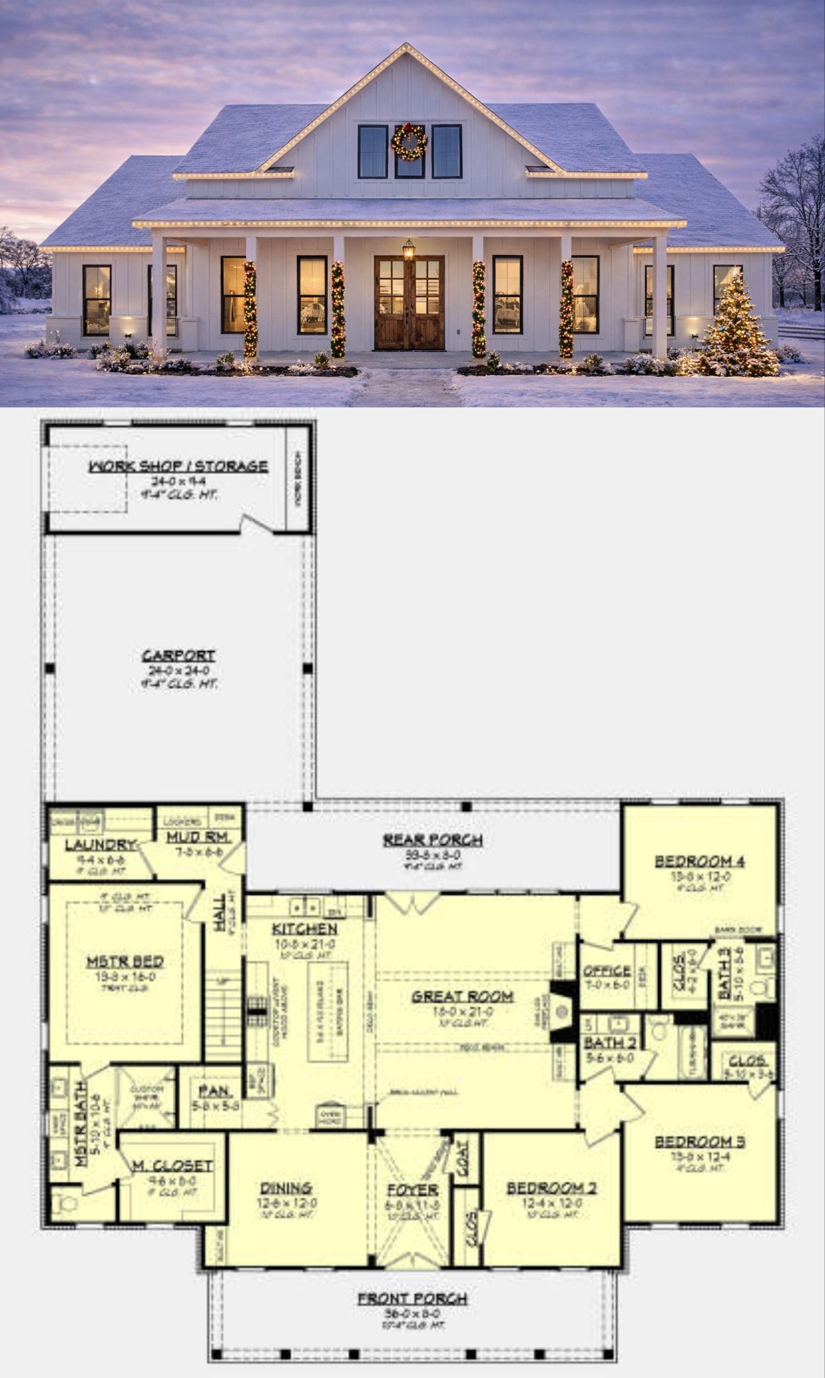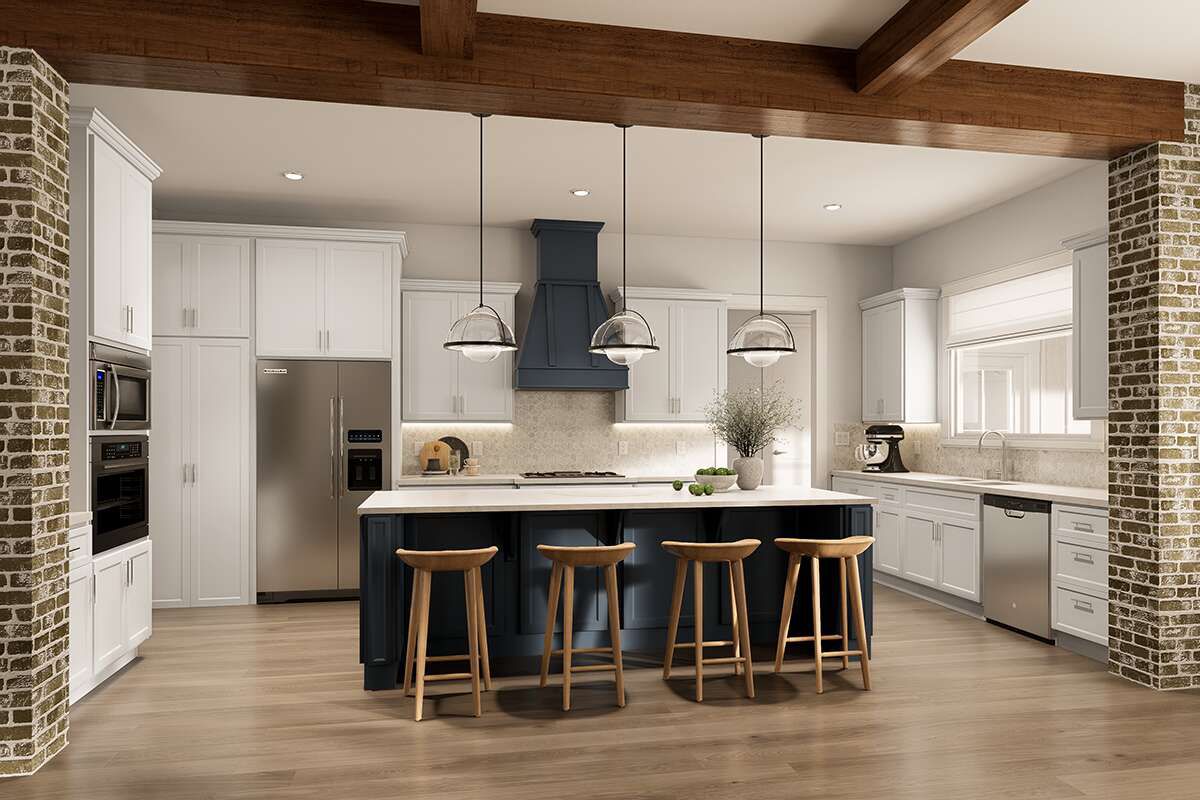 At approximately 66′ wide × 84′ deep, the home presents a grounded yet elegant façade that suits both countryside and suburban lots, achieving a look that’s classic but not fussy. 3