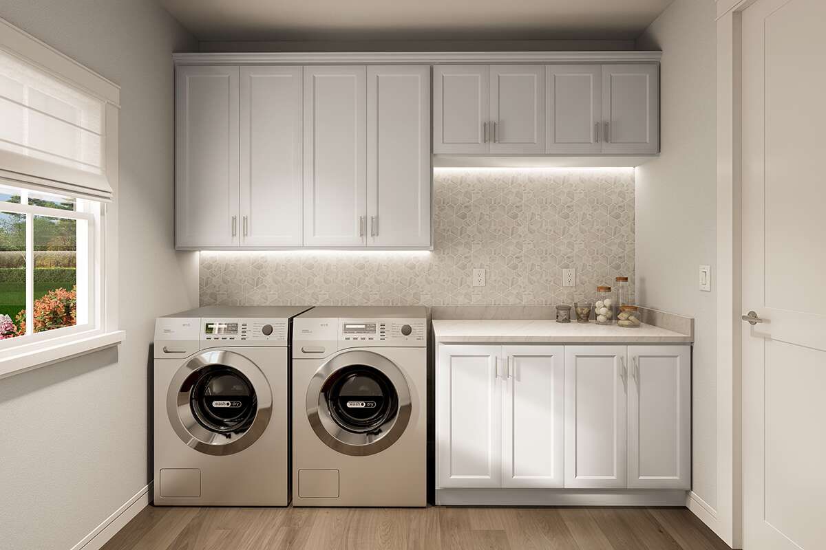 A combined mudroom and laundry room help keep daily chores and clutter contained. 21 Located near the garage entry, this zone makes everyday transitions — from errands to home life — easier and more organized. 22