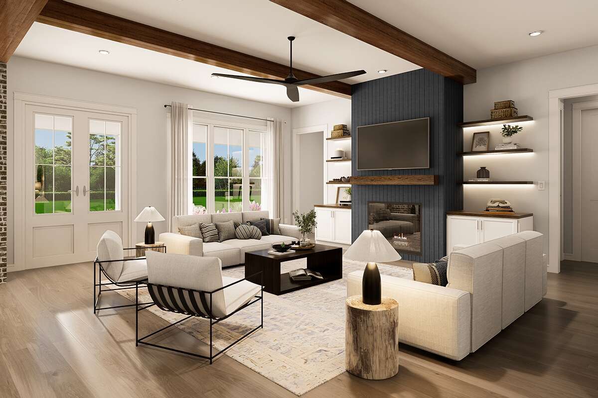 This modern farmhouse plan showcases how thoughtful design can blend everyday practicality with stylish living. Its open shared spaces feel bright and welcoming, the porch areas expand your usable living footprint, and the bonus room adds flexibility for future needs. Whether you’re hosting friends, settling in for a cozy family night, or creating dedicated work or hobby space, this home adapts beautifully to contemporary life.