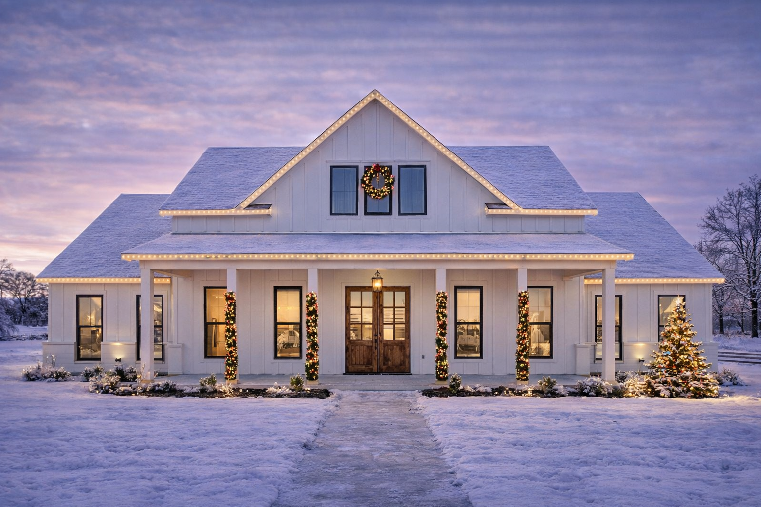 The exterior embraces timeless modern farmhouse aesthetics with a balanced roofline, abundant windows, and a generous covered front porch that instantly sets a welcoming tone. 1 This porch becomes an inviting transition between outdoors and indoors — ideal for porch seating, casual greetings, or simply enjoying a morning beverage. 2