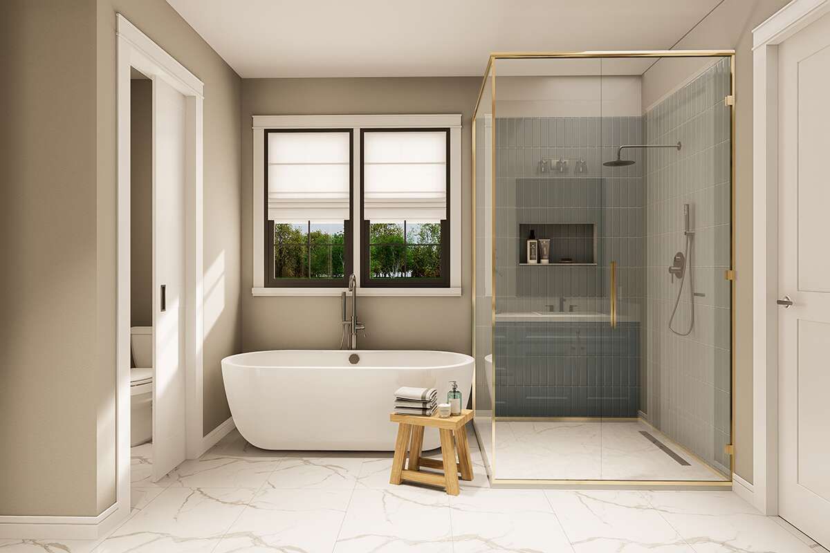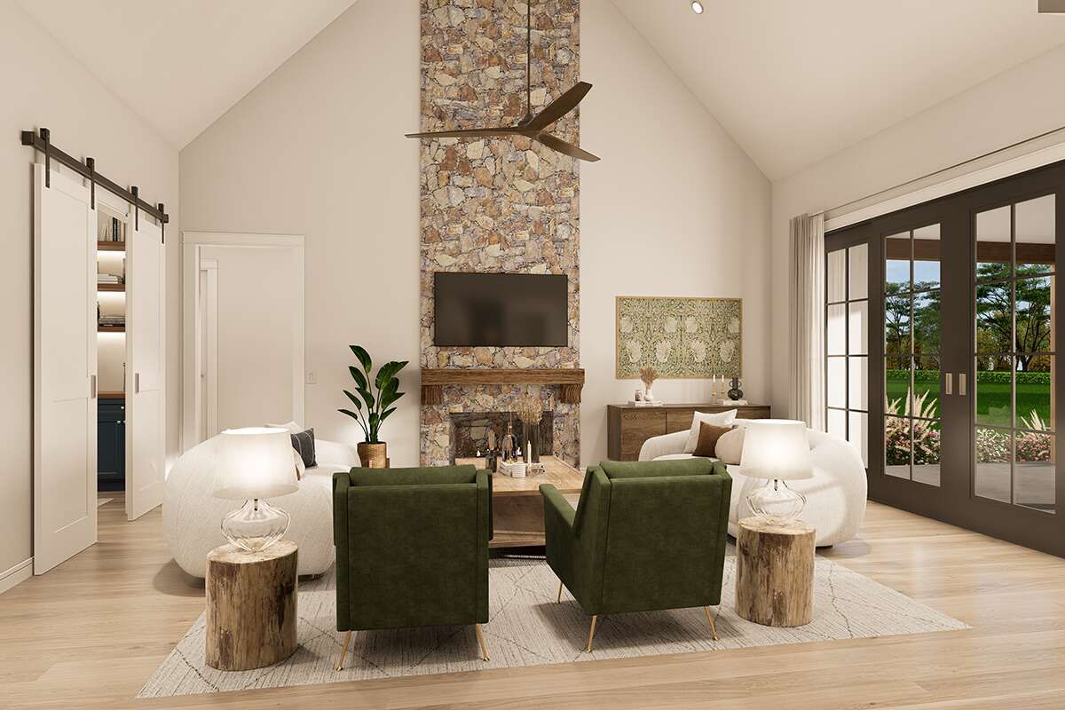Generous windows and doors bring abundant daylight into key living zones, strengthening the connection between interior and exterior spaces. 22 This focus on light and views enhances comfort, energy efficiency, and the overall sense of openness in the home. 23