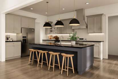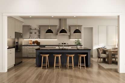 The kitchen sits at the core of the home and is designed for both everyday meals and social interaction. 8 A central island offers extra prep space, casual seating, and a natural hub for conversations, while ample cabinetry and countertops support efficient organization. 9