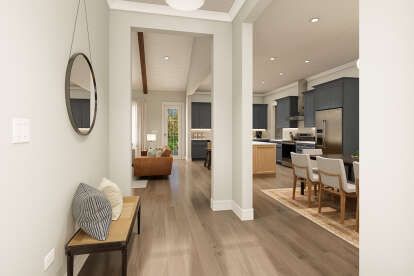 A conveniently located half bathroom serves the main living and entertaining zones without disrupting private bedroom areas. 20 The transition from the side-entry garage introduces a mudroom area that helps contain daily clutter, making everyday comings and goings efficient and neat. 21 A nearby laundry room adds to practical day-to-day flow and helps keep household chores discreet and organized. 22