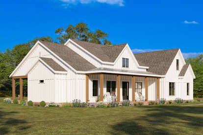 Modern Farmhouse Plan with Large Wrap-Around Porch and Rear Entry Garage