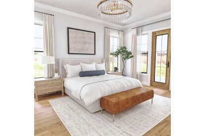 The primary bedroom suite is tucked toward one side of the home to ensure privacy and ease of access. 13 Thoughtful window placement brings in natural light, creating a serene environment for rest and relaxation. 14 It features a large closet and a well-appointed en-suite bathroom that supports daily comfort and convenience. 15