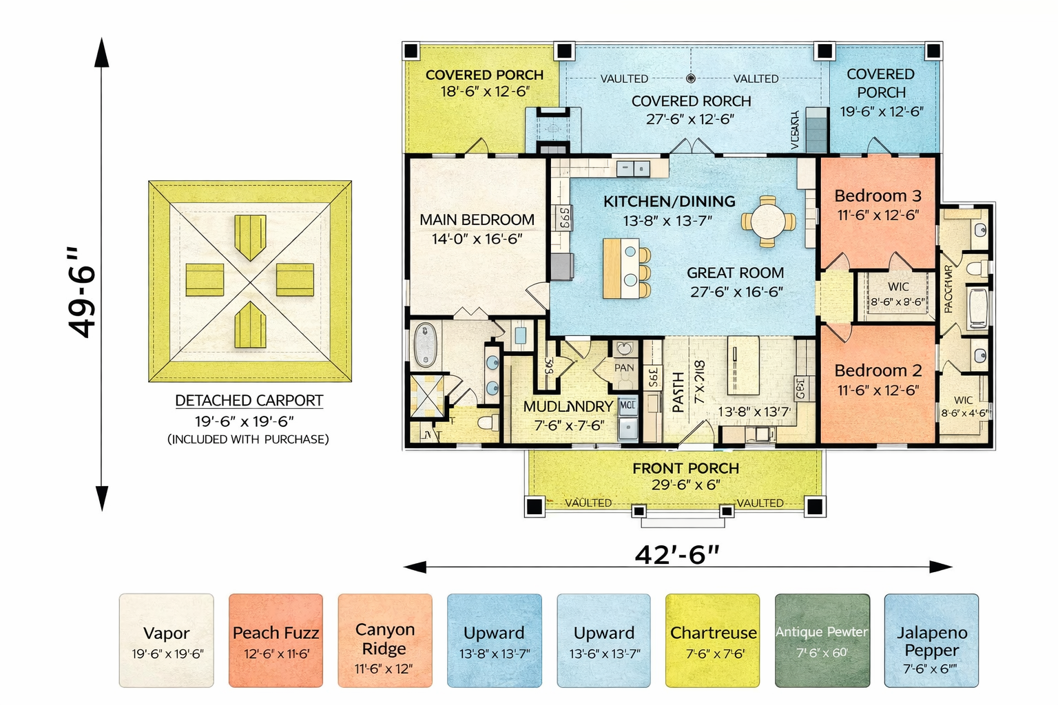 • Front and rear porch spaces that extend living outdoors and enhance relaxation.