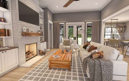 Generous windows and porch doors throughout ensure that each living zone enjoys natural light. 23 These connections to outdoor space enhance your sense of openness and create strong visual ties between interior comfort and the surrounding landscape. 24 Whether you’re hosting guests or enjoying quiet family evenings, the design promotes warm, open living. 25