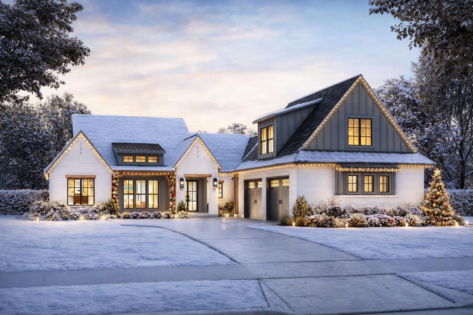 The exterior welcomes you with the classic simplicity of modern farmhouse styling—clean rooflines, balanced proportions, and subtle architectural details that create enduring curb appeal. A covered front porch extends your usable outdoor space and invites you into the home with comfort and charm. This façade blends traditional farmhouse warmth with modern refinement, making it appealing on a wide variety of settings from suburban streets to rural landscapes.