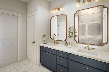 Two additional bedrooms provide bright, comfortable spaces for family, guests, or flexible uses like a home office or hobby area. 17 With the option to convert one of these rooms to a fourth bedroom or a bonus room, this plan supports changing lifestyle needs over time. 18 A second full bathroom is positioned to serve these spaces efficiently and without interrupting main living zones. 19
