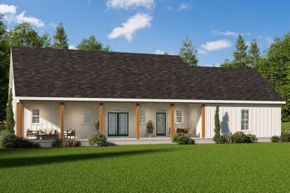 This well-designed modern farmhouse plan offers approximately 1,494 sq ft of intelligently planned living space on a single level. With flexibility for 3 to 4 bedrooms, 2 full bathrooms, and an attached 2-car garage, it blends classic farmhouse charm with a layout optimized for everyday comfort, efficient living, and a seamless connection between indoor and outdoor spaces. 0
