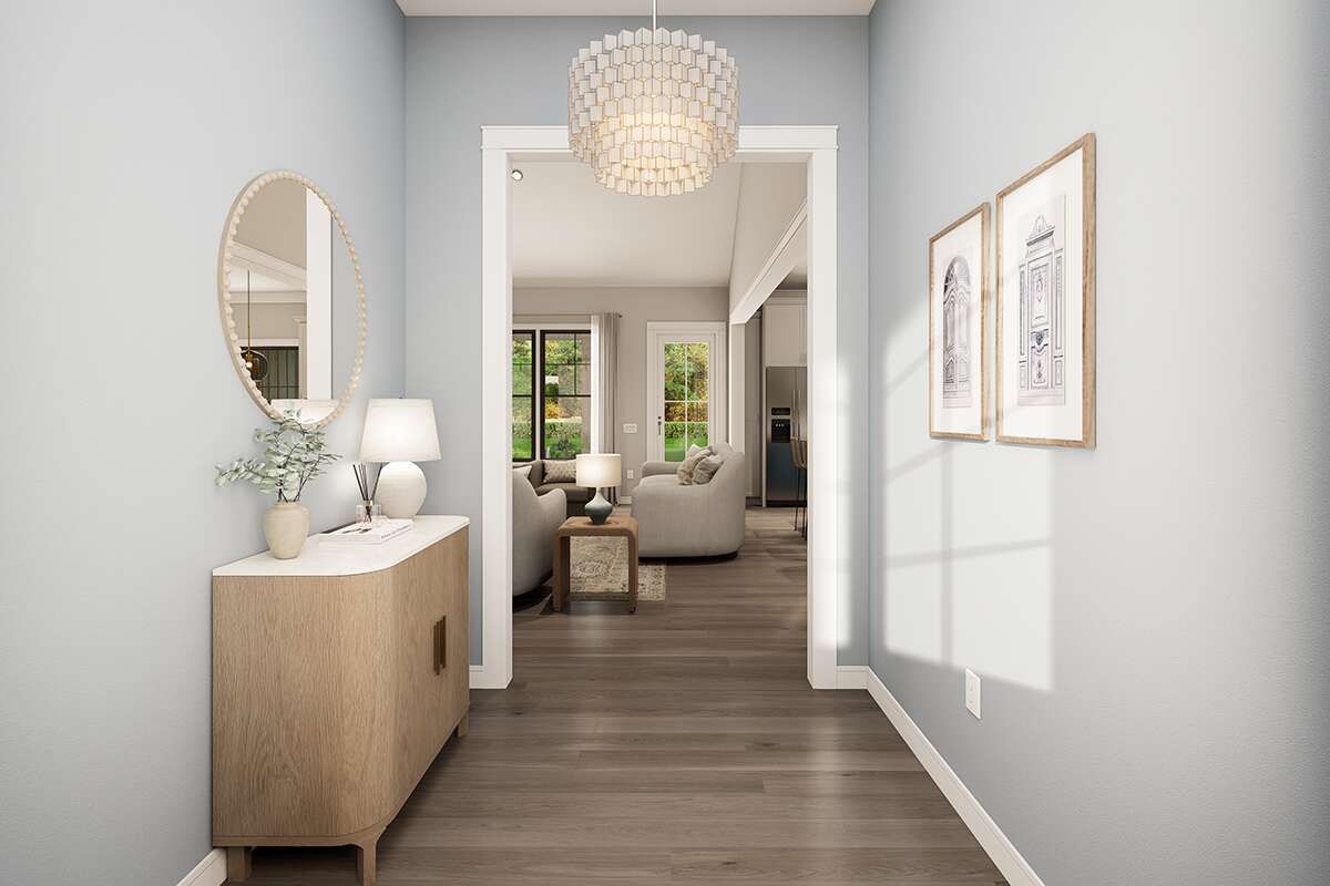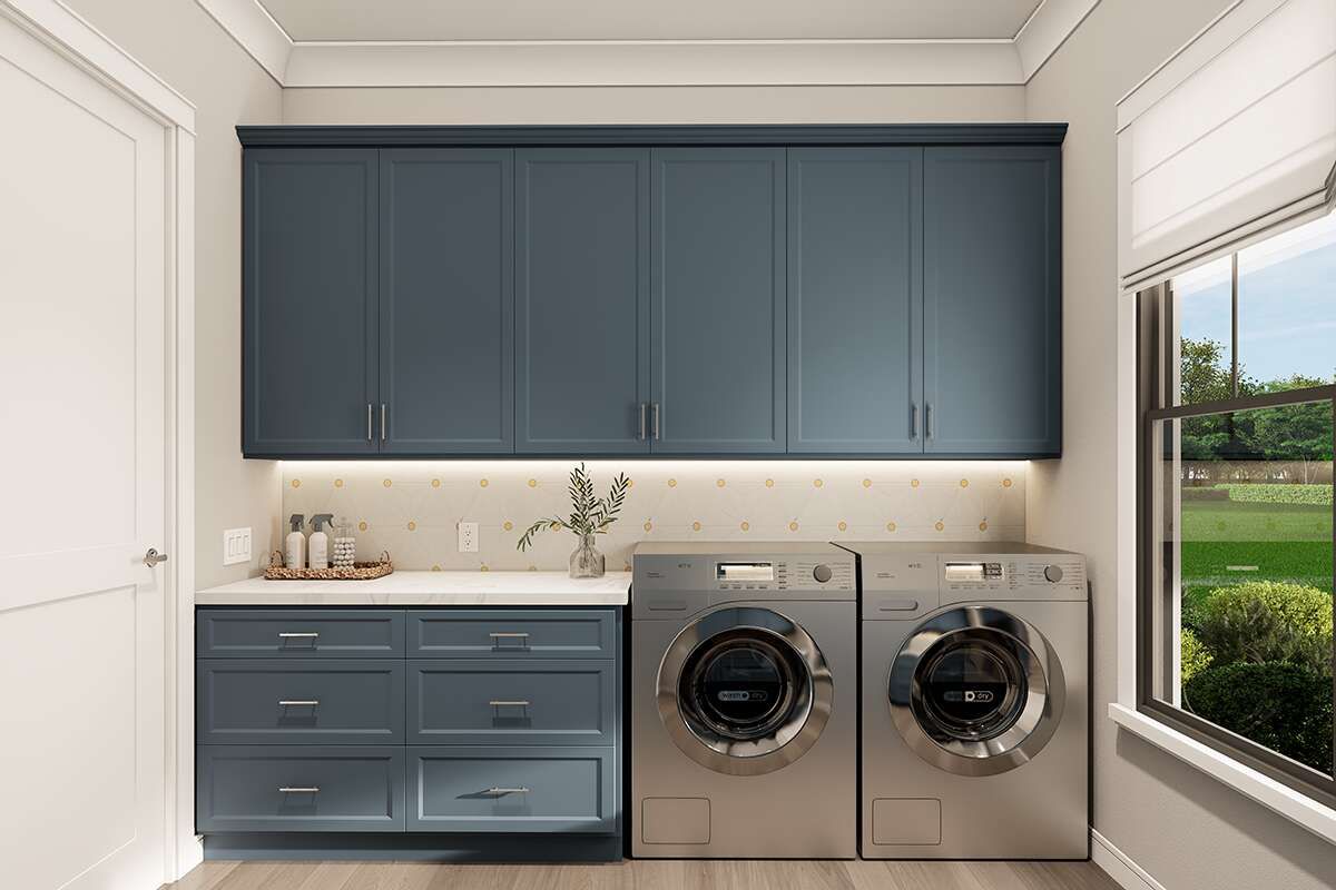 A dedicated laundry room keeps chores neatly contained and out of sight from main living areas. Storage closets are strategically placed throughout the home, helping maintain a tidy, organized interior without sacrificing valuable living space.