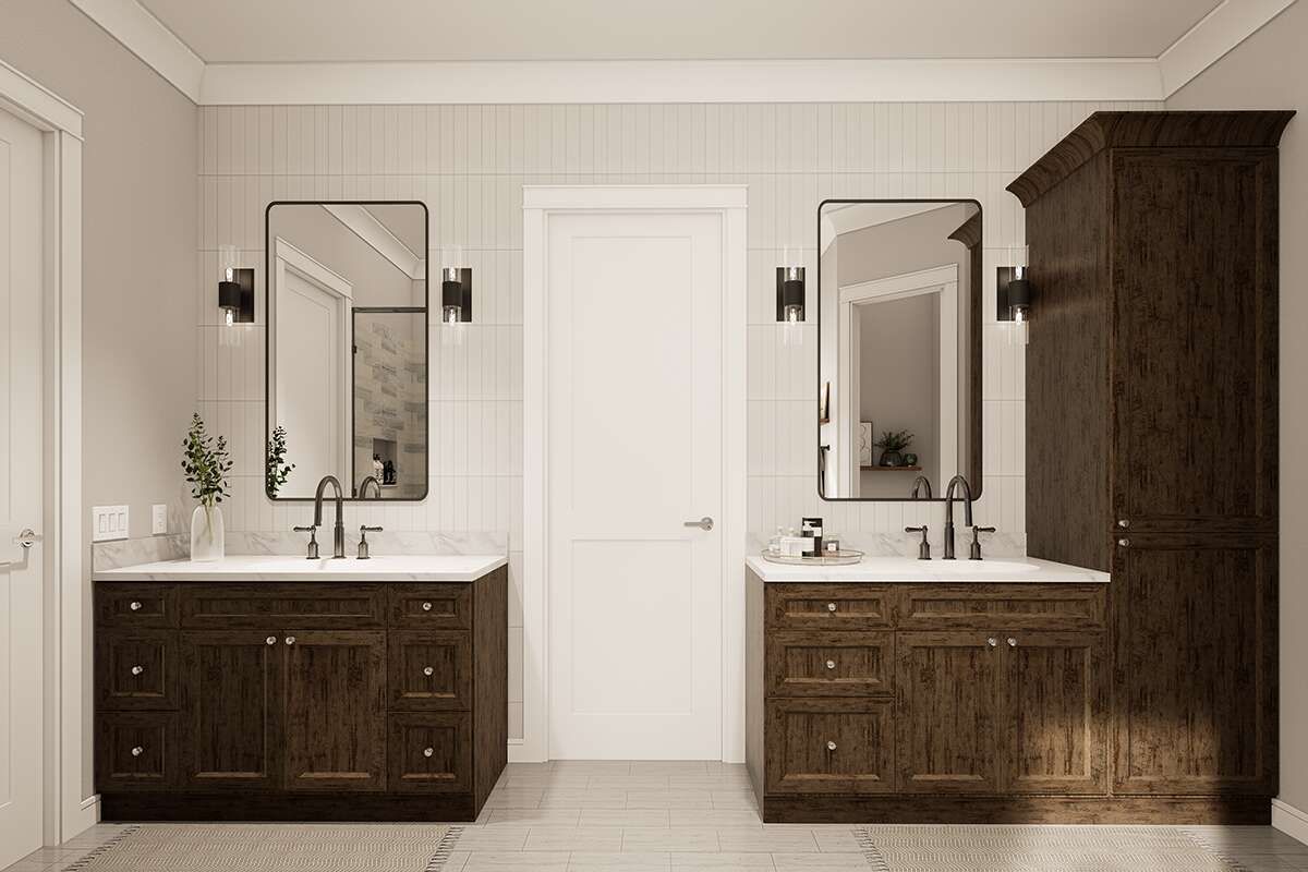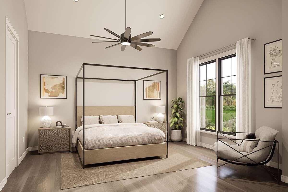 The primary bedroom is thoughtfully placed for privacy while remaining conveniently close to the main living spaces. Spacious enough for a king-size bed and personal furnishings, it feels like a true retreat at the end of the day. Its ensuite bathroom includes dual vanities and generous closet space, making daily routines comfortable and efficient.