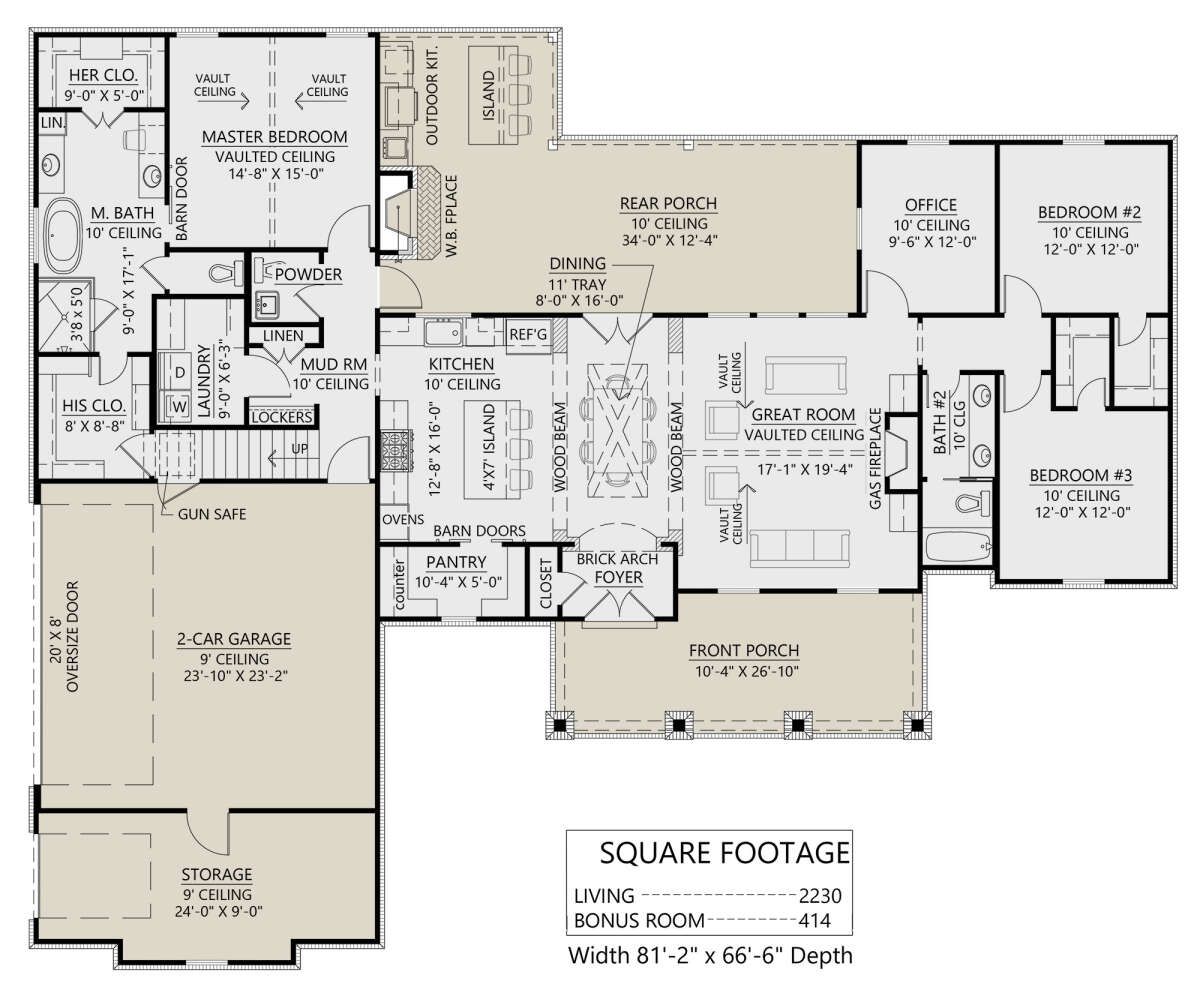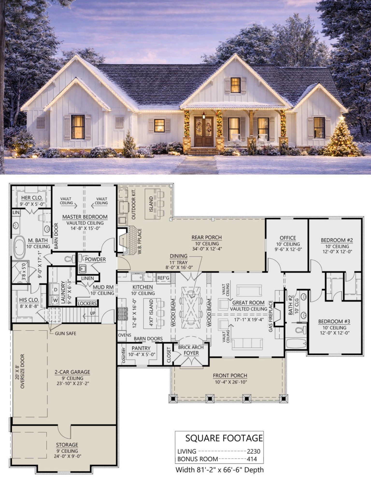 This modern farmhouse plan offers around 2,230 sq ft of beautifully organized living space designed for everyday comfort, effortless entertaining, and timeless farmhouse charm. With 3 bedrooms, 2 full bathrooms, and 1 half bathroom, this single-story layout blends open common areas, private retreats, and smart circulation to create a home that feels both spacious and inviting. 0
