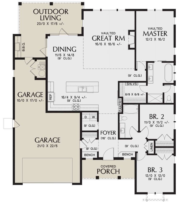 This modern farmhouse plan blends a warm, inviting exterior with an open, light-filled interior and functional layout that supports everyday living and casual entertaining. With its vaulted living core, flexible bonus room, and connected outdoor spaces, it feels both efficient and spacious — the kind of home that’s comfortable today and versatile for Tomorrow.