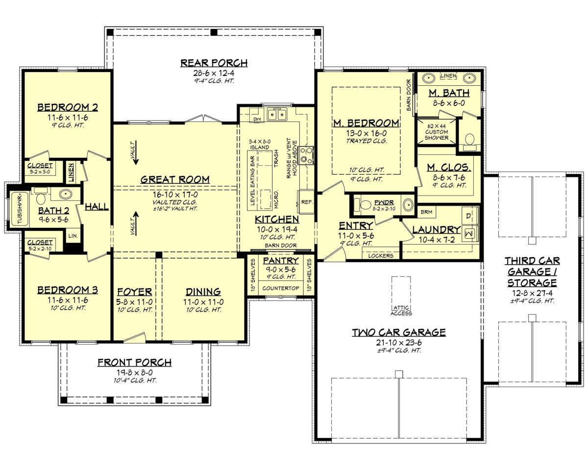 Craftsman House Plan – Spacious 4-Bedroom, 2.5-Bathroom One-Story Home with 3-Car Garage (~2,300 Sq Ft)