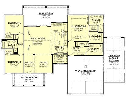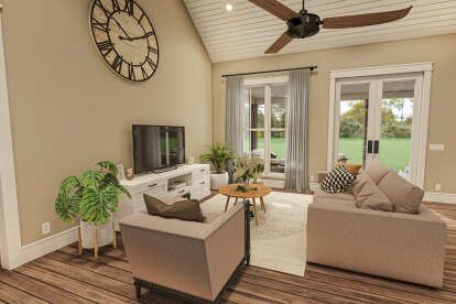 This farmhouse plan emphasizes smart circulation and everyday practicality. Closets are well-positioned, and storage areas are thoughtfully integrated to keep the home organized without sacrificing living space.The laundry area is easily accessible from the main living zones, making household tasks feel less intrusive and more efficient. The overall flow of the home supports smooth daily routines, from morning rushes to relaxed evenings.