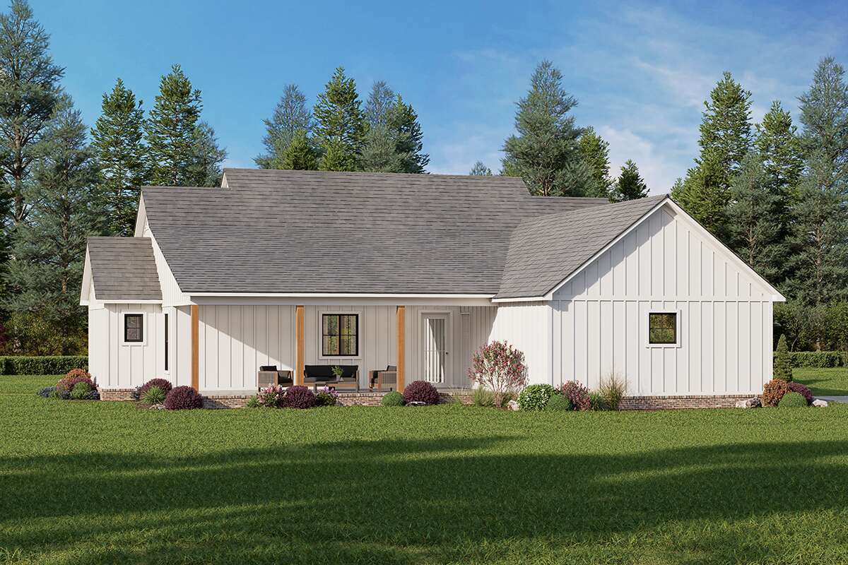 This modern farmhouse plan blends classic appeal with smart functionality. Its open central area creates a welcoming ambiance, while the split-bedroom layout and generous porch spaces cater to both privacy and outdoor living. From family dinners to relaxed weekends on the porch, this home suits modern lifestyles without sacrificing timeless charm.