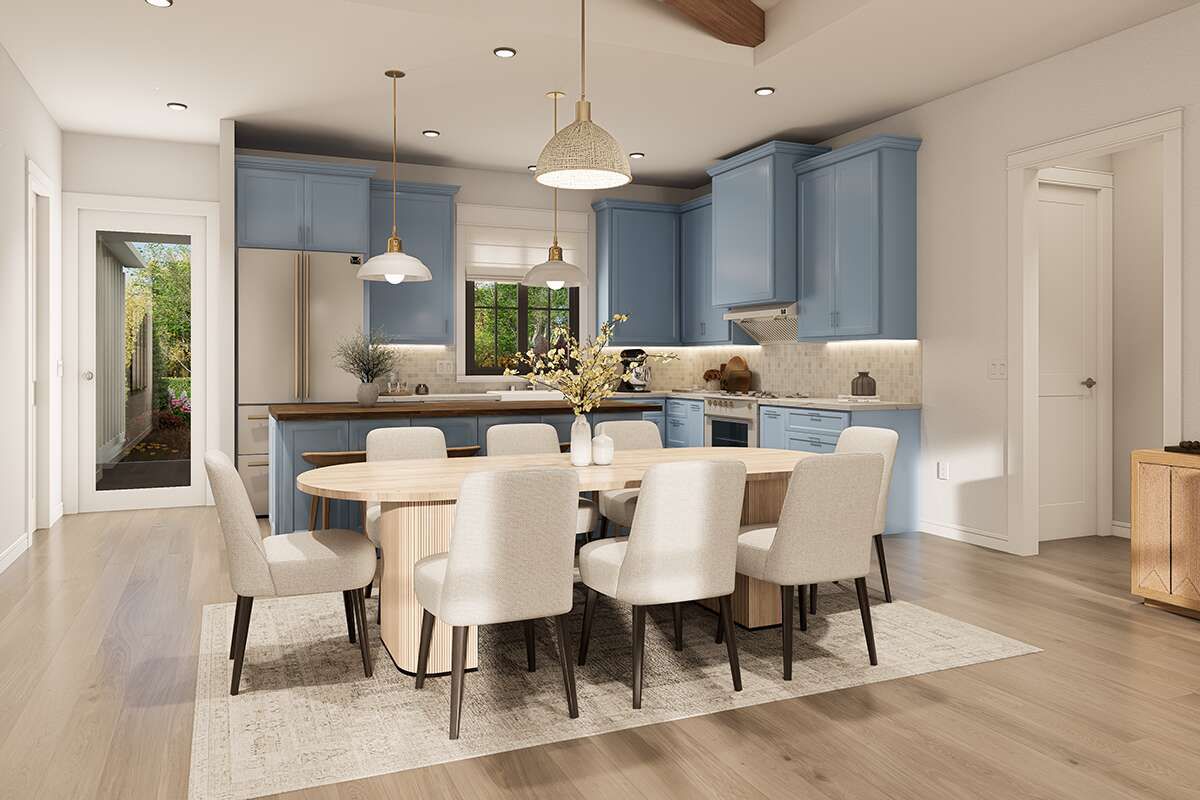 The kitchen offers an efficient layout with ample counters and storage, thoughtfully positioned to serve both casual meals and entertaining occasions. 9 Its adjacency to the dining area makes serving and conversation easy, while sightlines to the great room keep the space connected. 10