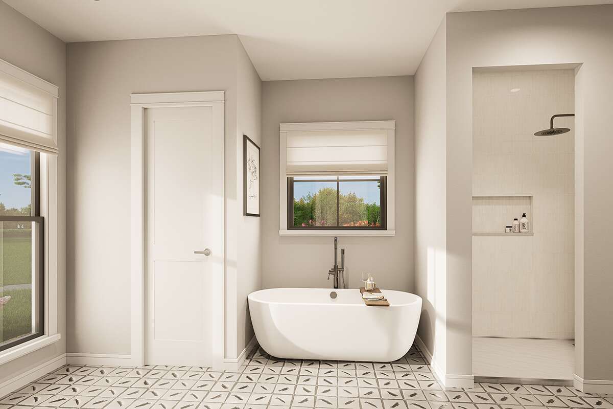 Located on one side of the home for privacy, the primary bedroom serves as a peaceful retreat. 11 Its en-suite bathroom typically features dual vanities and a thoughtfully arranged layout that supports everyday comfort. 12 Large windows welcome daylight and offer views of outdoor living spaces. 13
