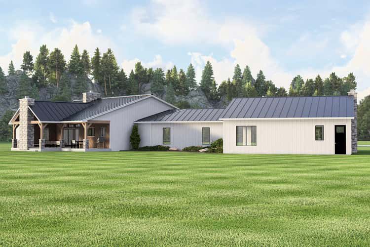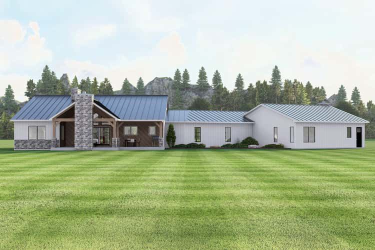 This modern farmhouse ranch plan stands out because it combines the best of multiple worlds: the openness and charm of farmhouse living, the practicality of a single-level home, and the flexibility of a fully independent in-law apartment. Whether you’re planning for an extended family, want guest space, or even hope for rental income — this design gives you room to grow without building multiple structures. It’s ideal for long-term living, evolving family needs, or multigenerational households — delivering comfort, privacy, and versatility all under one roof.
