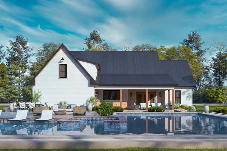 This modern farmhouse design seamlessly blends open, light-filled living spaces with practical private zones and generous outdoor amenities. With its thoughtful bedroom placement, flexible bonus space, and an outdoor kitchen that invites everyday entertaining, it supports both relaxed family living and lively social gatherings — all framed within a timeless and welcoming farmhouse aesthetic. 36