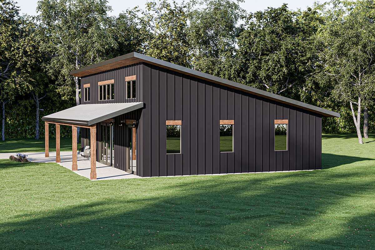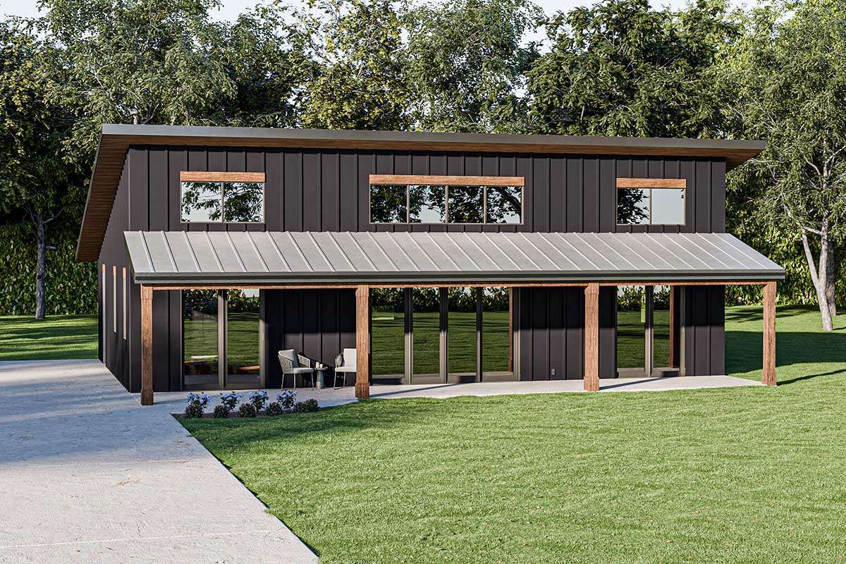 this modern house plan is designed for comfortable living with a clean, contemporary feel, making it ideal for couples, small families, or downsizing homeowners. 0