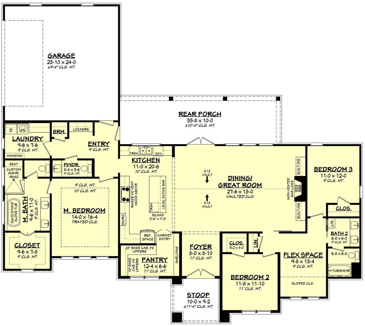 The plan also includes a flex room, providing versatility for use as a home office, playroom, or additional living space depending on the homeowner’s needs. 4