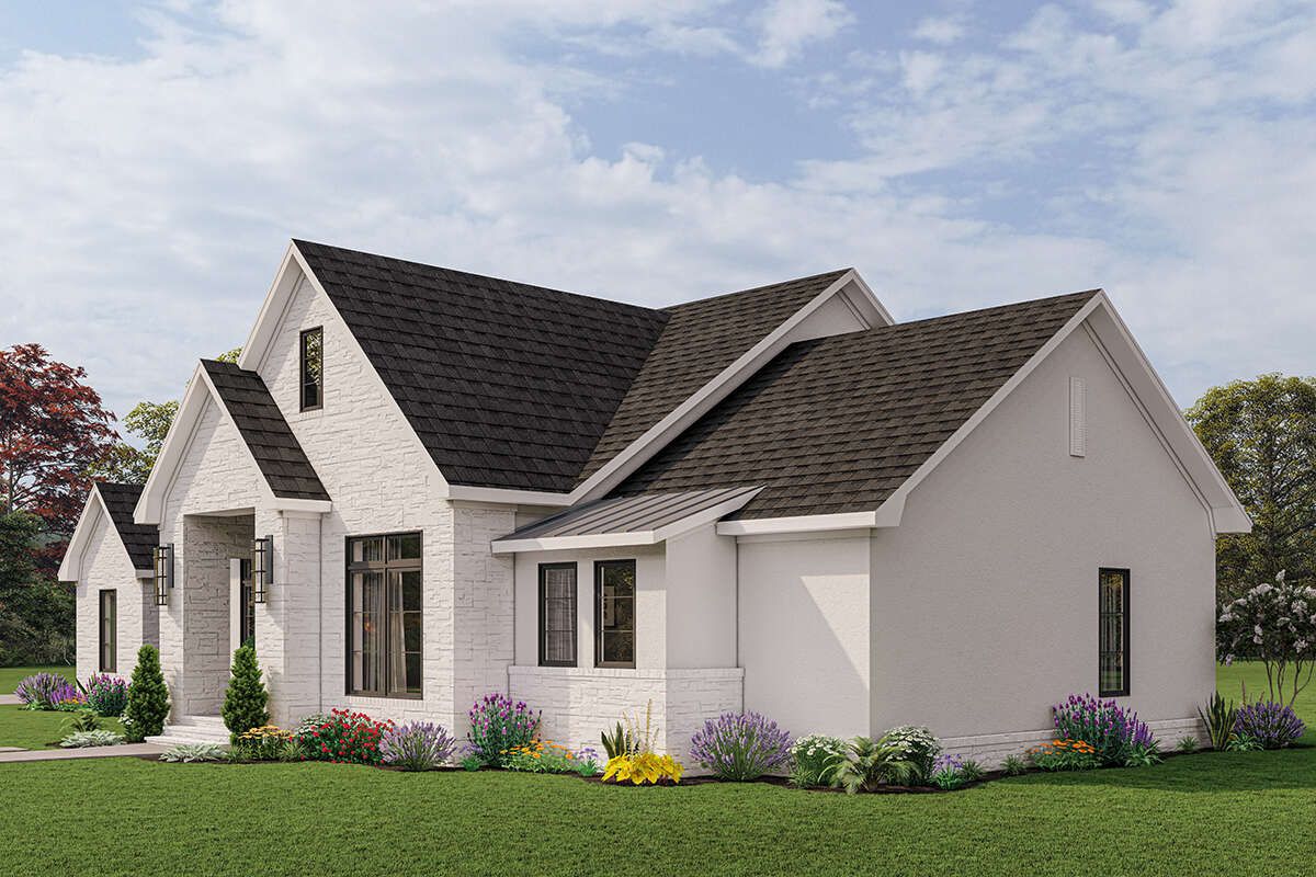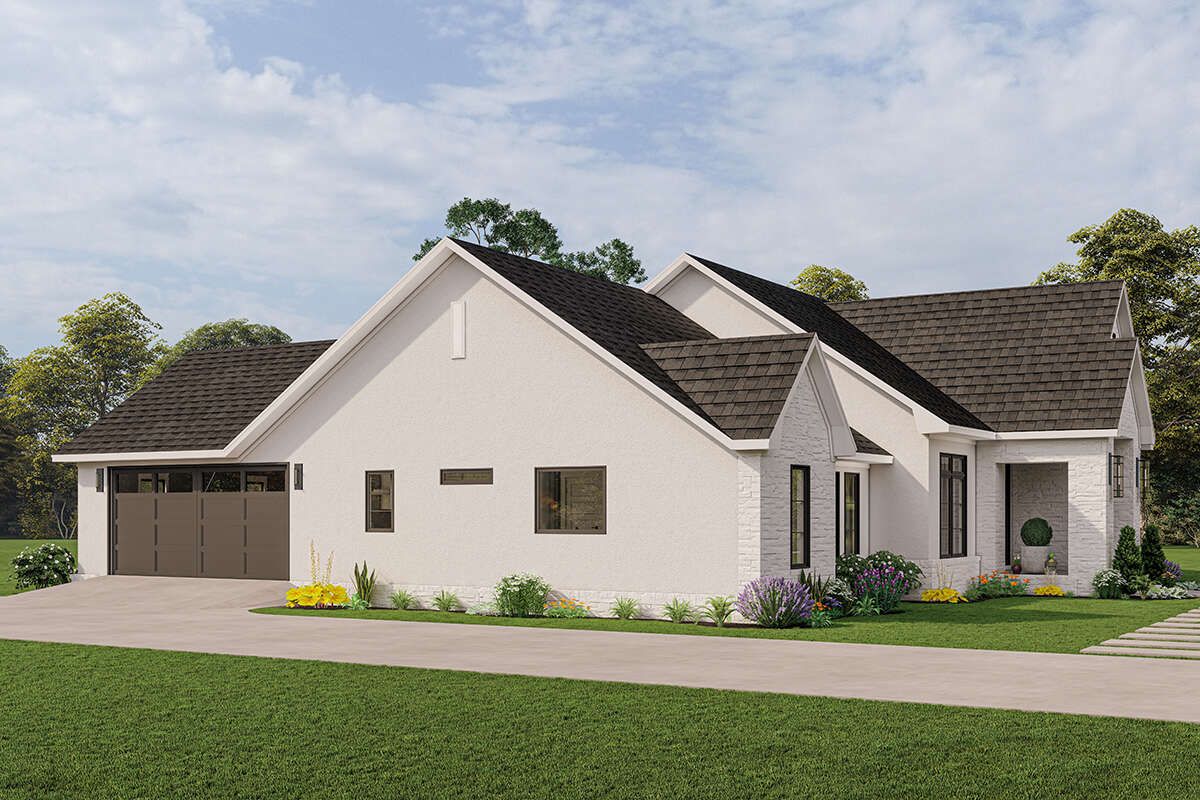 The side-entry garage enhances curb appeal while maintaining practical access to the home through a mudroom.