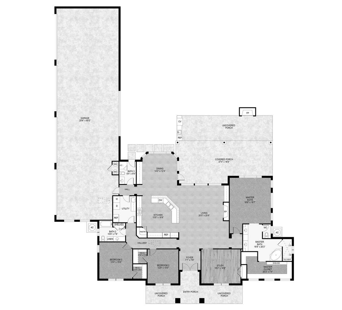 This expansive and highly functional home offers approximately 3,061 square feet of heated living space with three bedrooms and three full bathrooms. The layout featured in