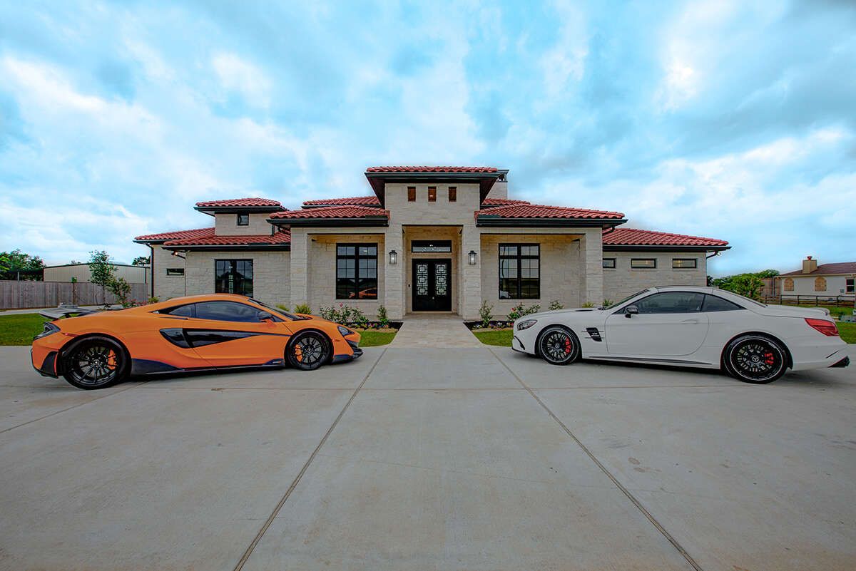 The exterior showcases a strong modern design with a wide footprint and clean architectural lines. Its large structure and balanced proportions create a bold and impressive curb appeal.