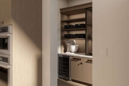 The kitchen is designed for both function and aesthetics. 10 A large central island provides plenty of prep space and casual seating, while abundant cabinetry and counters support efficient organization. 11 The kitchen’s position ensures effortless flow between meal prep, dining, and living spaces — ideal for families and weekend hosting alike. 12