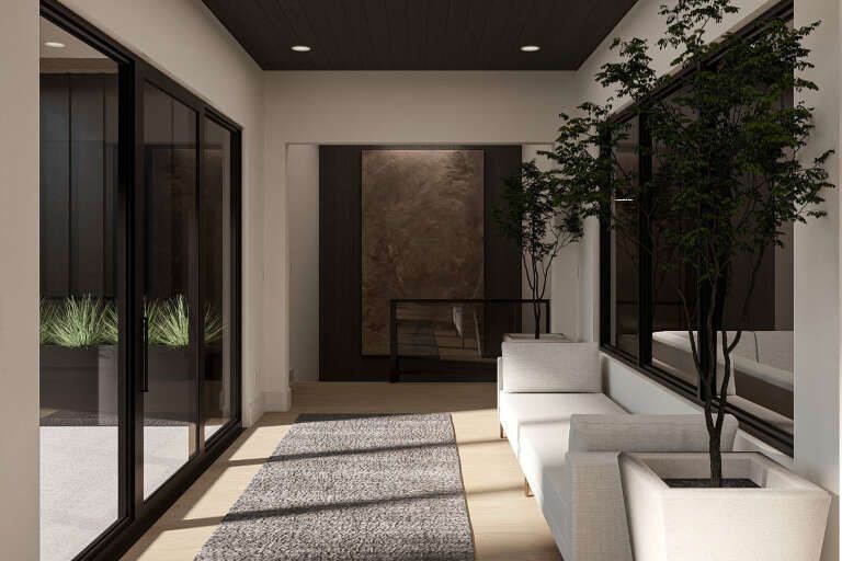 This modern home plan combines generous interior space with flexible design that suits a variety of lifestyles — from growing families to entertaining hosts. Its open layout, large windows, and adaptable bedroom options make it both inviting and accommodating, while thoughtful touches like the three-car garage and seamless indoor-outdoor flow enhance everyday living.