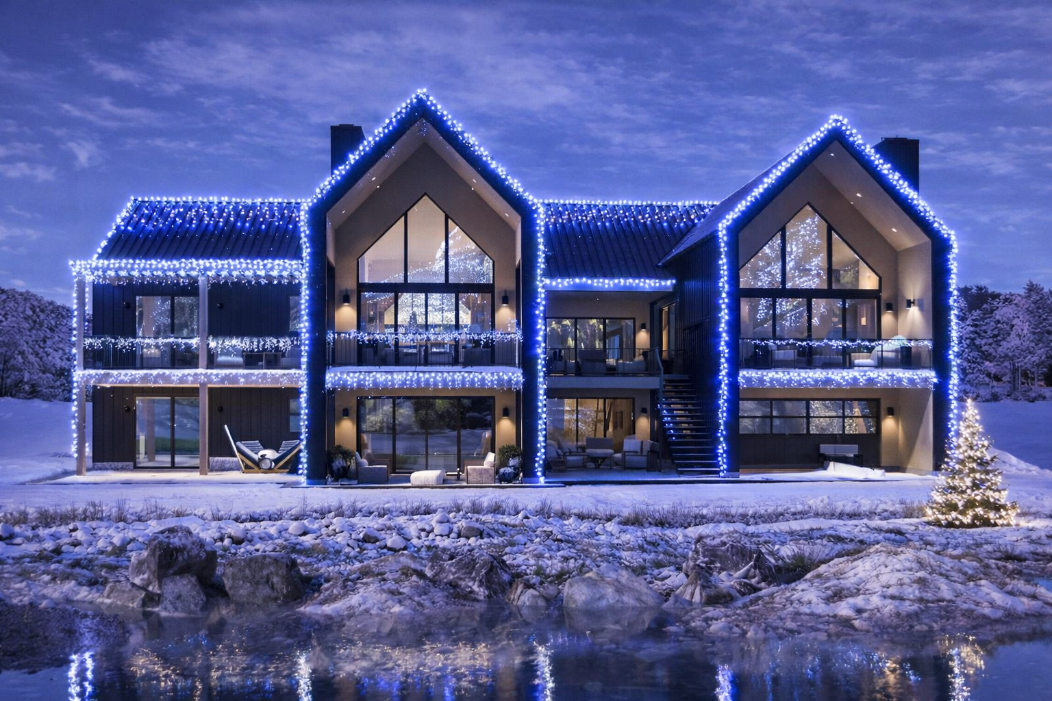 - Abundant windows that bring natural light deep into the interior spaces.