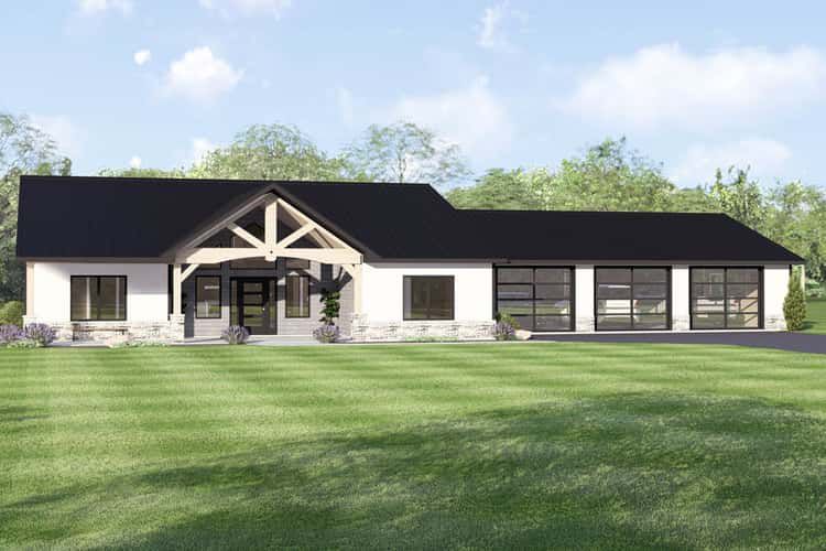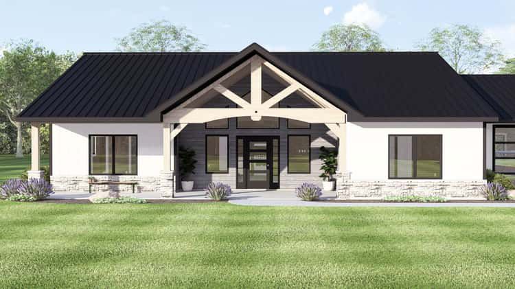 This modern ranch plan blends contemporary style with thoughtful space planning to create a home that feels both inviting and functional. With its open layout, generous outdoor living, practical split bedroom design, and well-appointed amenities, it suits families who value connection, comfort, and a layout that adapts to everyday life.