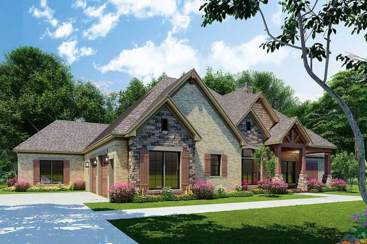 This modern-rustic Craftsman plan offers roughly 2,767 sq ft of heated living space — all on one level. With 4 bedrooms, 4 full bathrooms and a side-load 2-car garage (~724 sq ft), it combines thoughtful layout, stylish curb appeal, and functional comfort. The design balances common gathering areas with private retreats, making it ideal for families, guests, and everyday life.