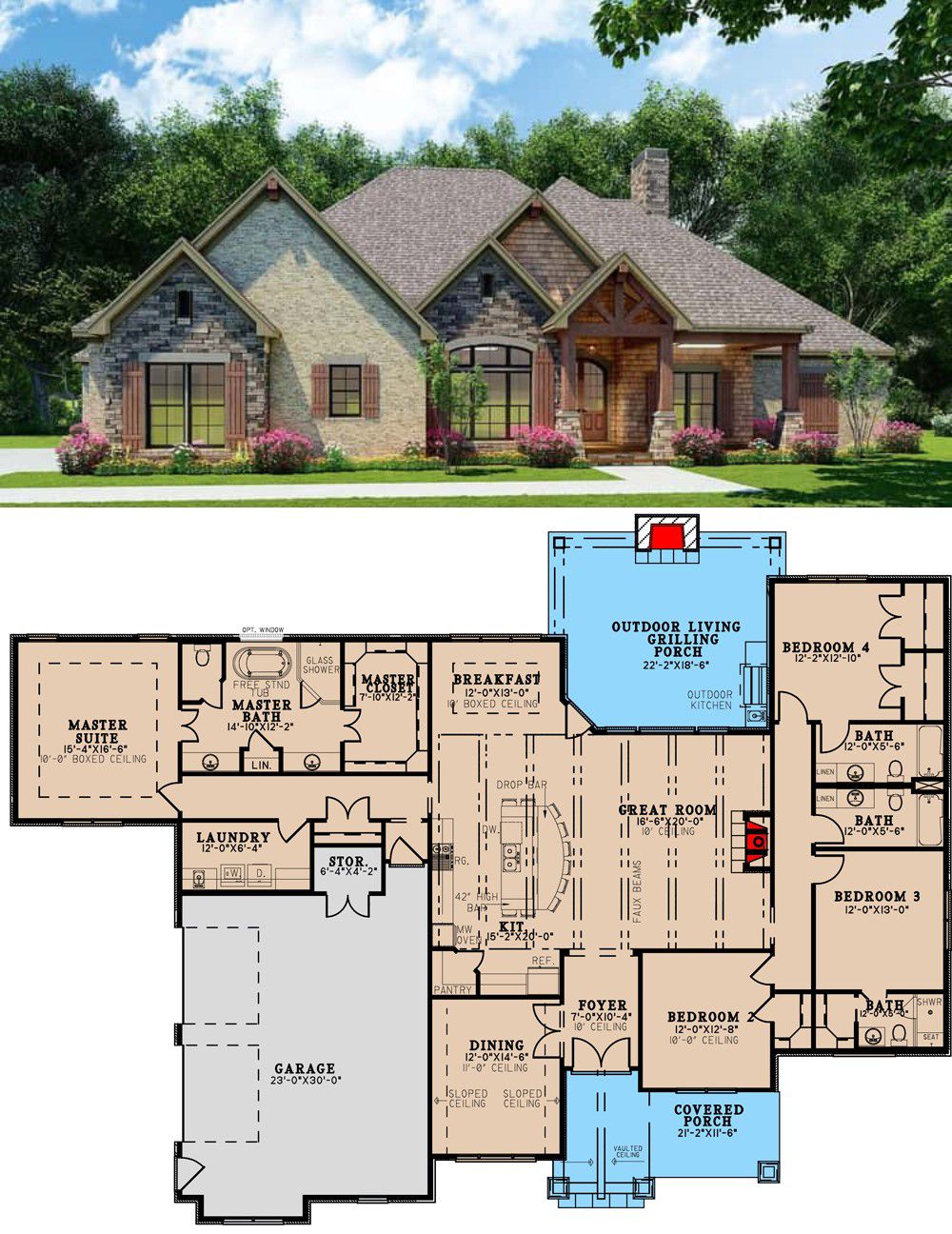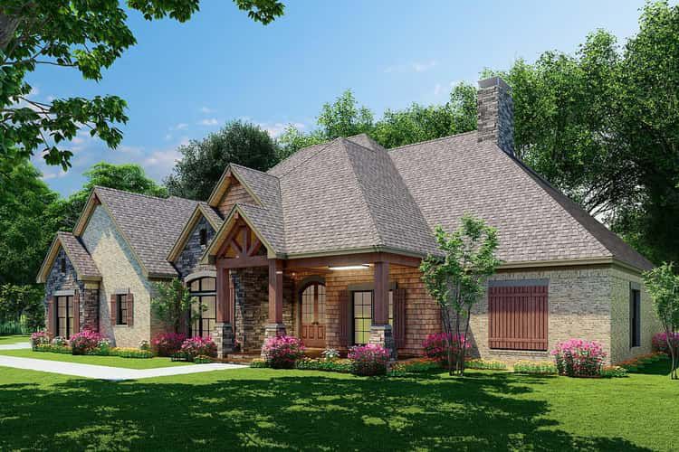 - Style & Materials: Modern-rustic Craftsman with brick, stone, and shake siding; exposed beams and fireplace create rustic warmth. 18