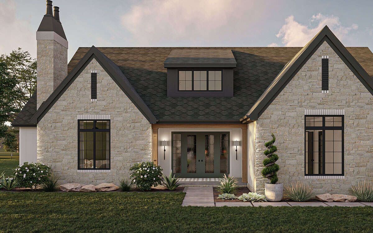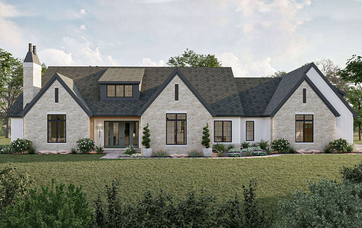 this modern transitional house plan blends contemporary style with classic design elements, creating a perfect balance between comfort and sophistication. 0