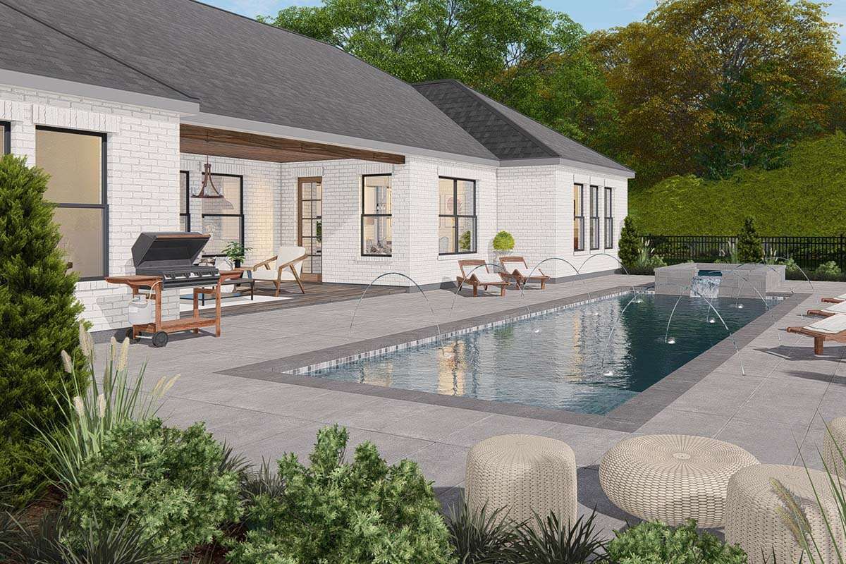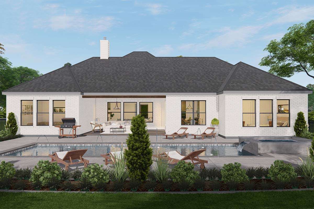 This modern transitional house plan offers a perfect blend of elegance, space, and functionality. With its large layout, open design, and high-end features, it is an excellent choice for building a modern dream home.