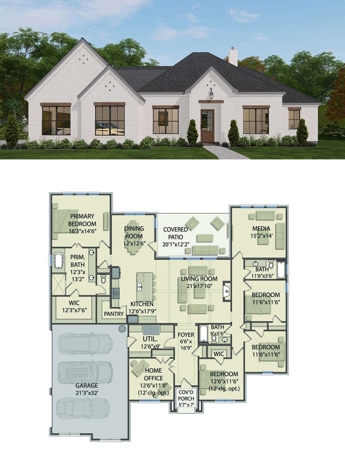 this modern transitional house plan blends contemporary design with classic elements, creating a perfect balance of style and functionality. 0