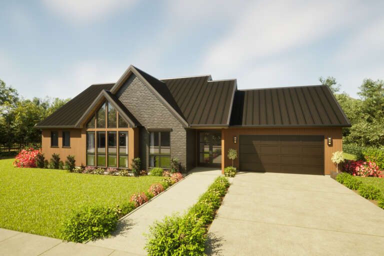 This modern transitional house plan offers a perfect blend of classic charm and contemporary living. Its flexible layout, open design, and balanced proportions make it an excellent choice for homeowners seeking a stylish and functional home.