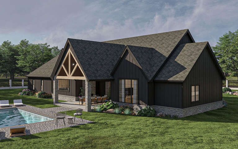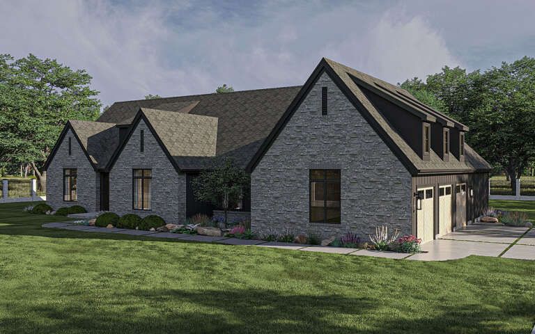 This modern transitional plan delivers the best of both worlds: clean, updated style with warm, livable comfort. With four bedrooms, four full bathrooms, and a spacious open layout, it supports family routines and entertaining with ease. It feels polished without being cold, spacious without being overwhelming, and designed for real living—beautiful, flexible, and truly guest-ready.