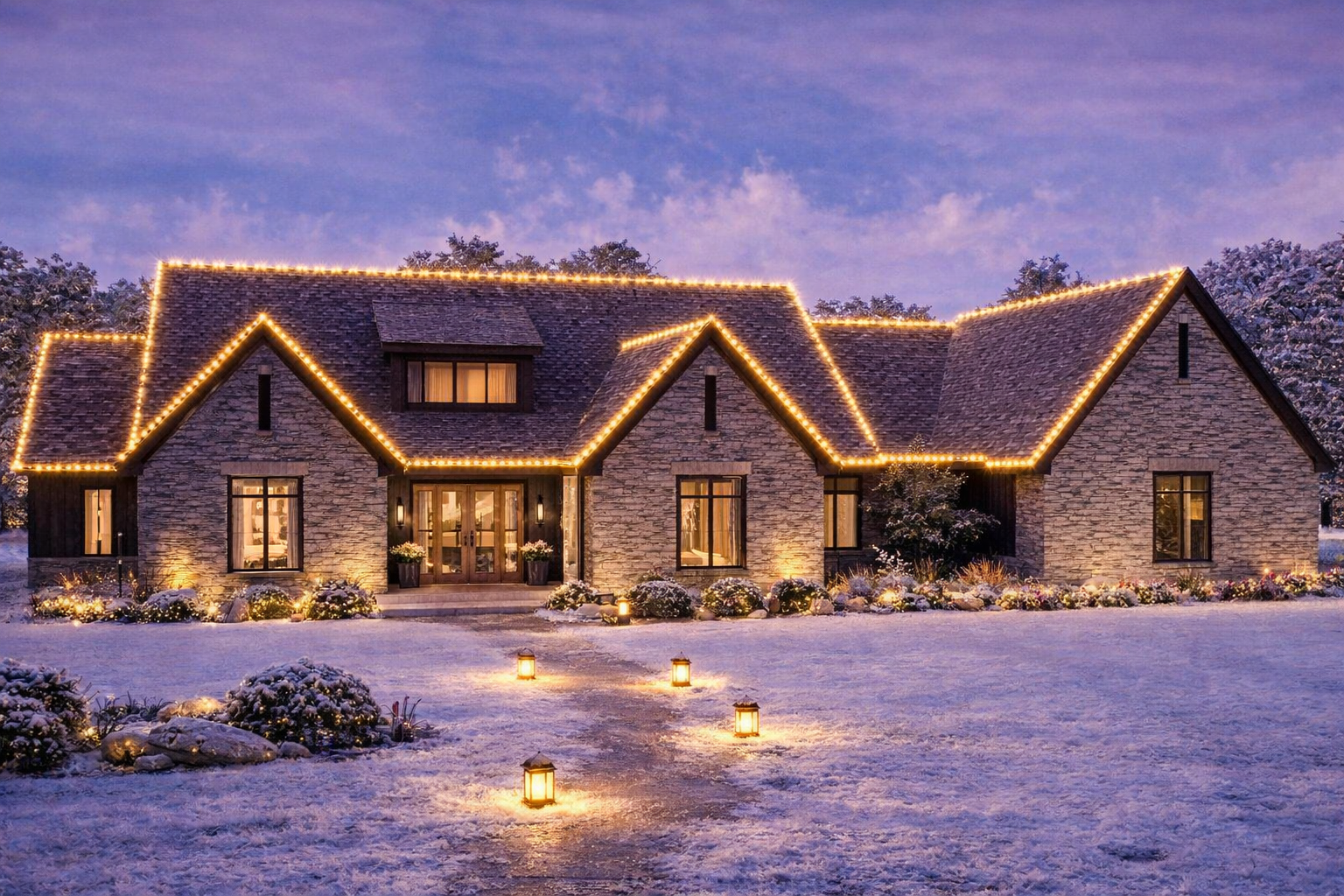 At over 3,200 square feet, it has a confident presence on the lot. The kind of home that looks substantial and “finished,” like it belongs there. Add neat landscaping, clean walkways, and warm exterior lighting, and the curb appeal becomes even more striking—especially in the evening when the architecture really stands out.