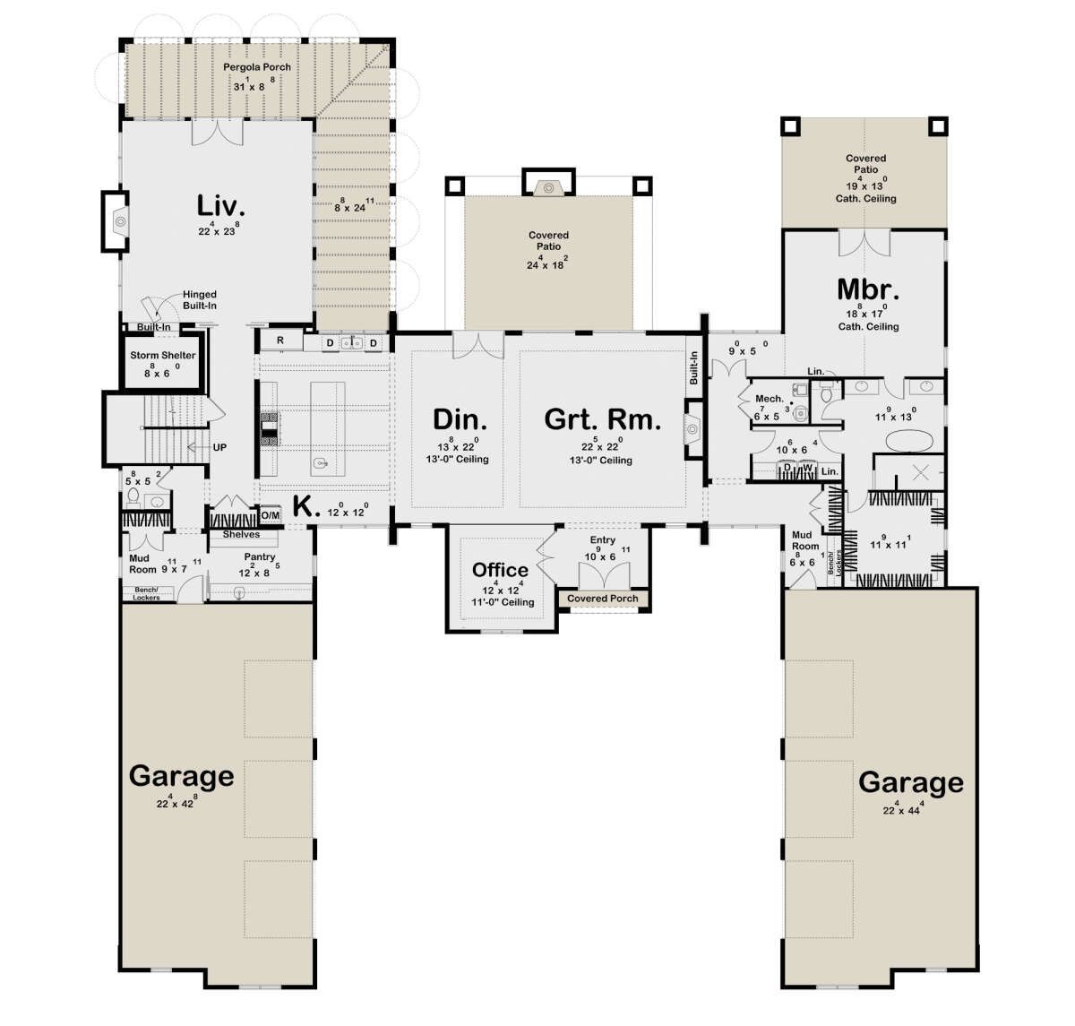 An expansive attached 6-car garage (~2,070 sq ft) offers ample parking and storage for vehicles, recreational gear, and seasonal items. 23 Interior access connects to a mudroom space that helps keep daily clutter contained while providing a smooth transition inside. 24 Practical amenities throughout the plan — like laundry, storage, and flexible rooms — support everyday ease and long-term living comfort. 25