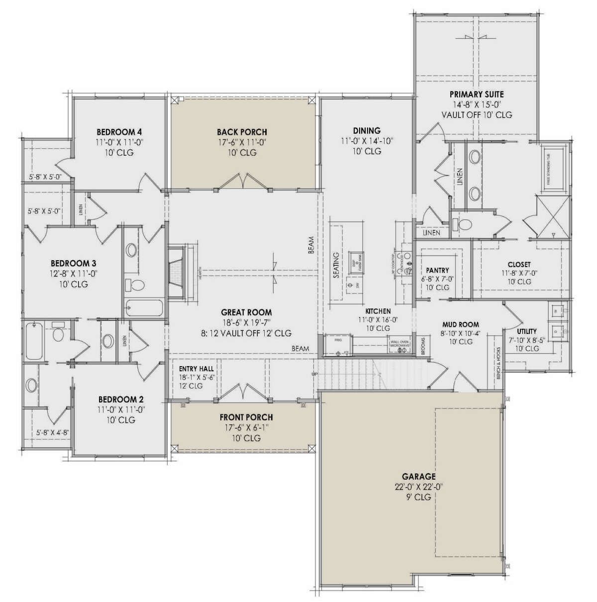With three full bathrooms, this plan makes daily routines smooth and convenient — no morning bottlenecks or sharing stress. 19 The placement of baths supports both private and guest use without interrupting the primary traffic patterns of the home. 20 Thoughtful circulation keeps the layout intuitive and easy to navigate. 21