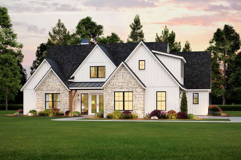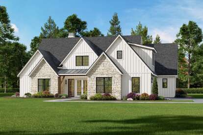 Modern Farmhouse Plan with Large Wrap-Around Porch and Rear Entry Garage