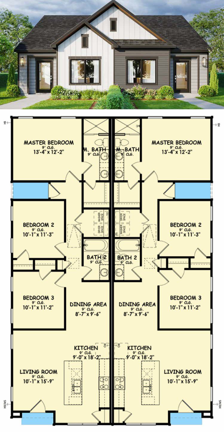 New American Duplex – Compact, Smart 3-Bed/2-Bath Units (~1,143 Sq Ft Each)